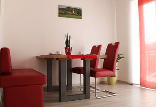 Ferienwohnung mit Blick auf die Frankenhöhe, sehr komfortabel ausgestattet mit Küchenzeile, Wohn-Essbereich und jeweils zwei Schlafzimmern - genügend Platz, um sich richtig wohl zu fühlen.